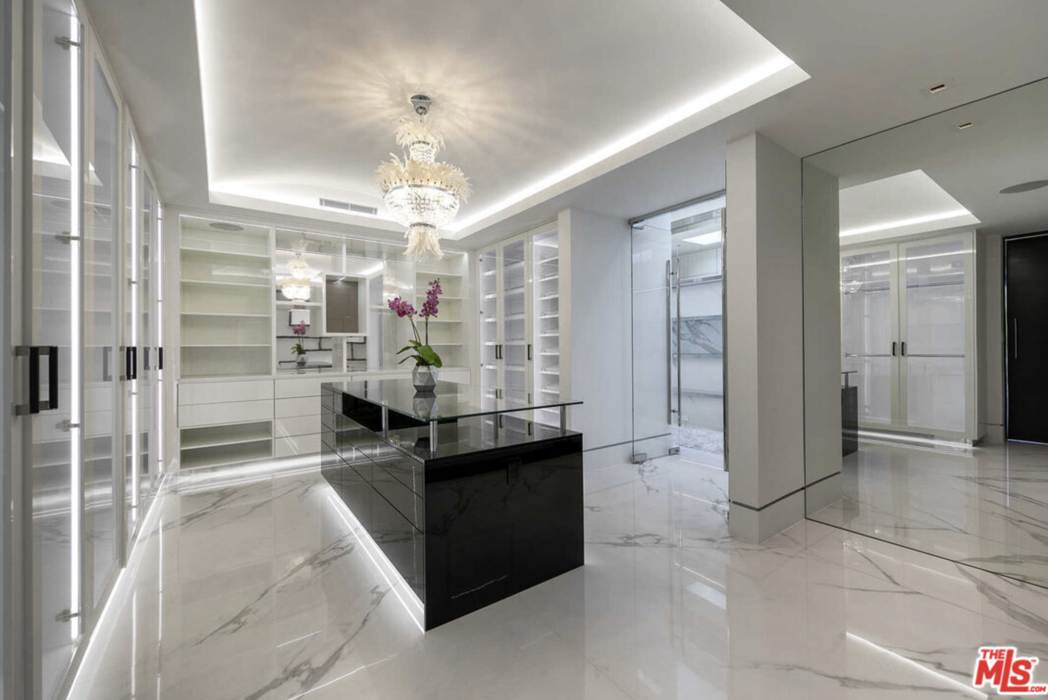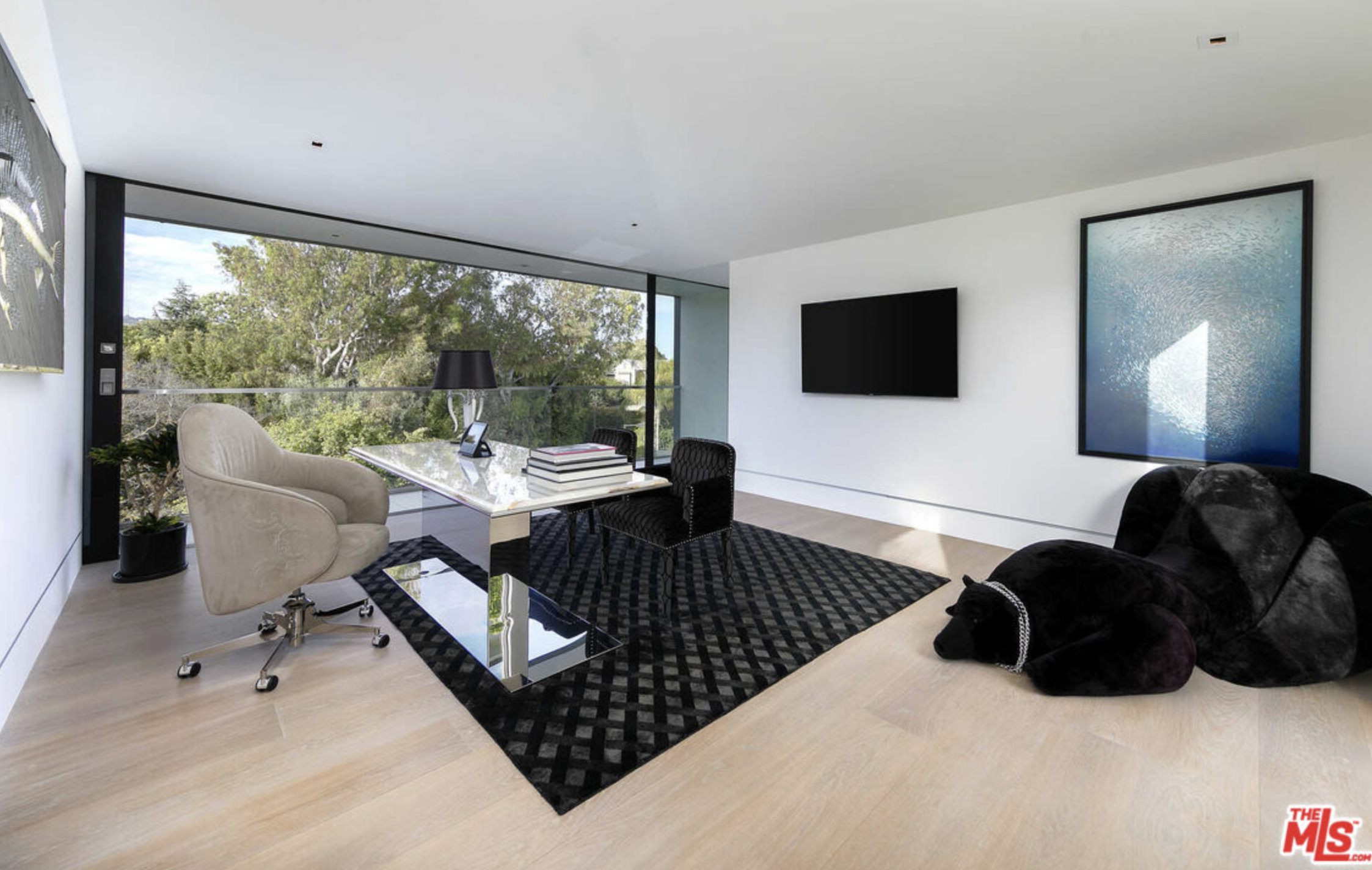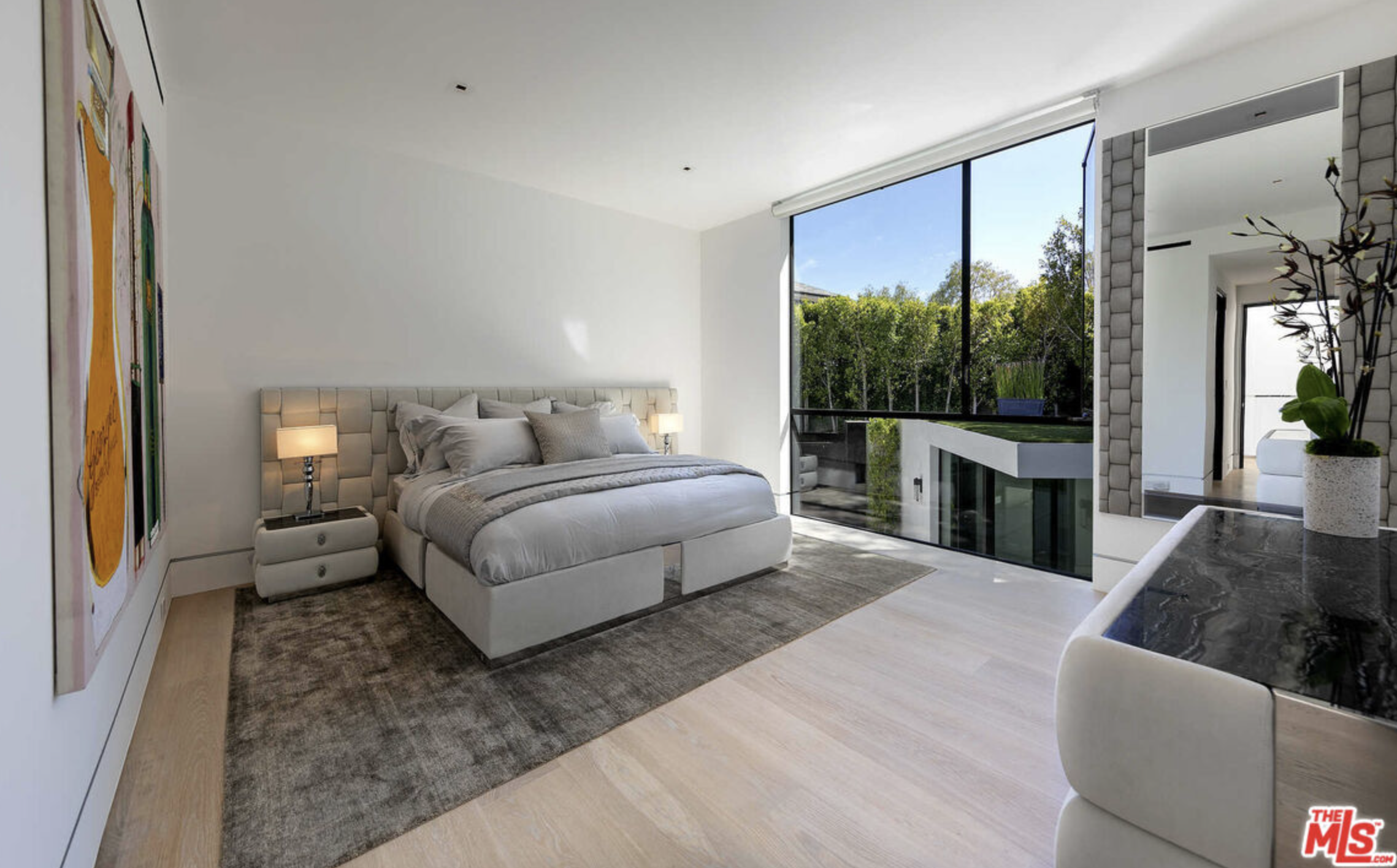 This sophisticated, brand new Beverly Hills estate offers exquisite amenities, ultra-private gated living, and sleek, polished interior design by Roman James. The main living area has an illuminated coffered ceiling and walls of glass. The kitchen features sleek floor-to-ceiling cabinetry, a stone island, and matching pendant lights. The formal dining room is long and white with a statement light fixture. With an illuminated pool, pool house, patio, firepit, outdoor bar, vast spa, and pristine tennis court, welcome to your private outdoor haven. An expansive theater with an illuminated bar, a chic office, and a gym add to the amenities. The primary suite includes a fireplace, private patio balcony, hot tub, gorgeous bathroom, and spectacular dual walk-in closets. With a laundry room, 2-car garage, 8 additional parking spaces, and proximity to the Los Angeles Country Club and Rodeo Drive, this contemporary estate encapsulates the height of luxury, beauty, and ease.