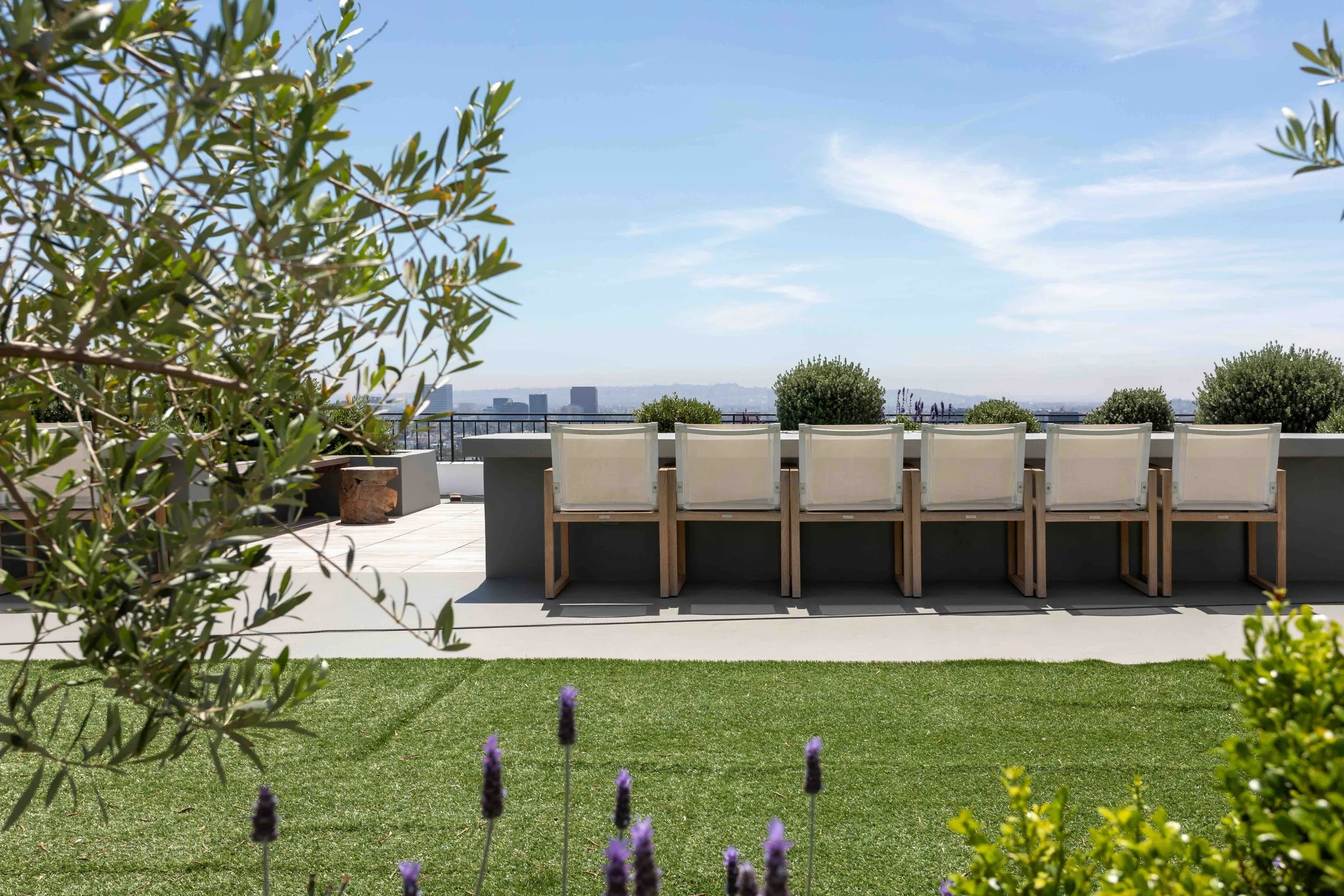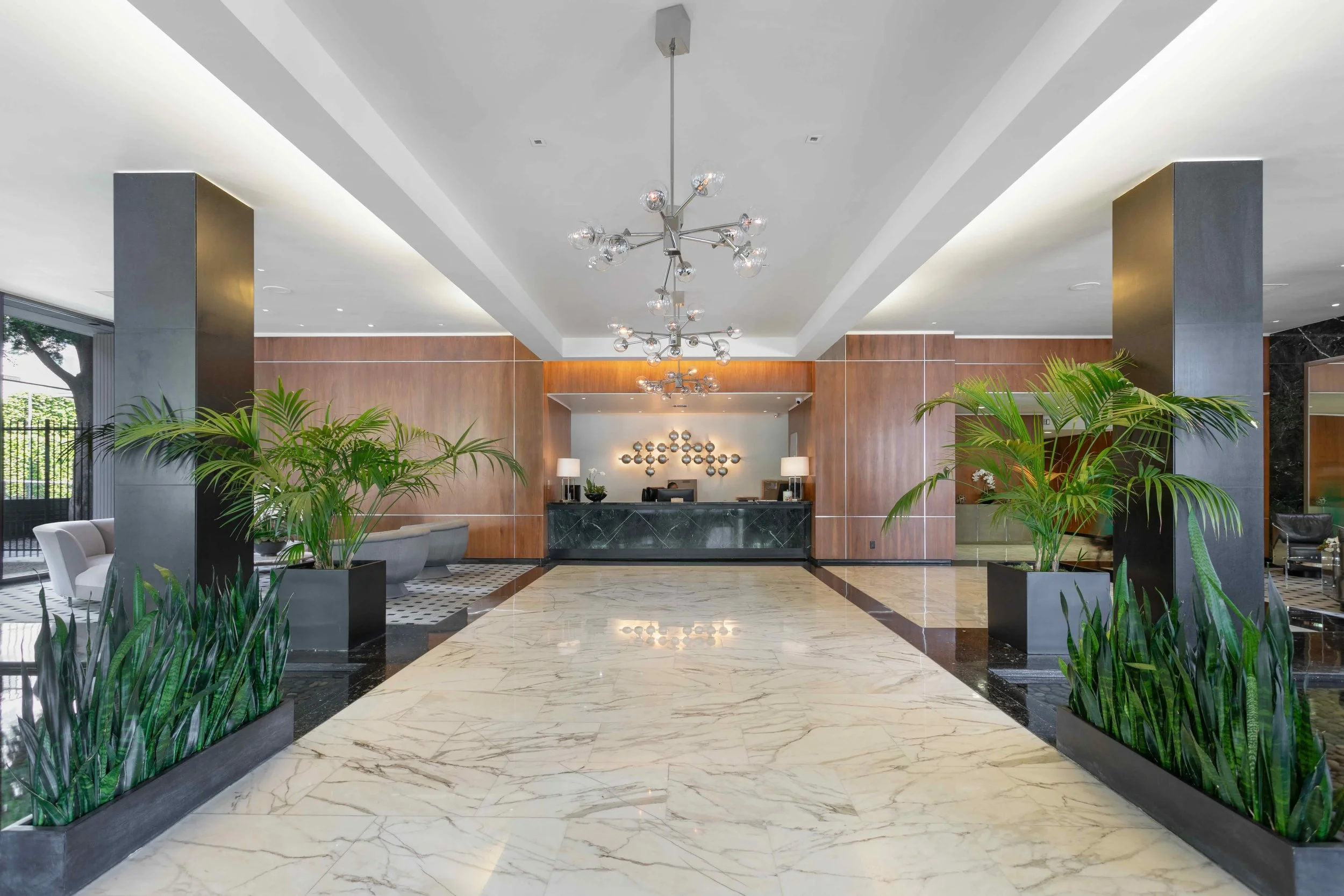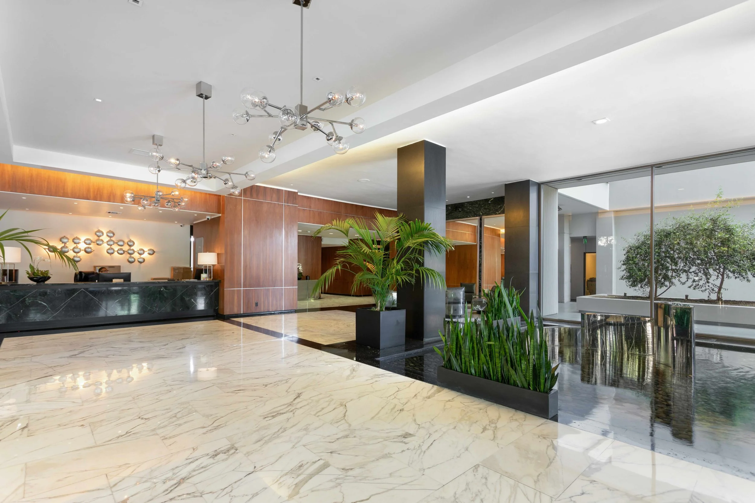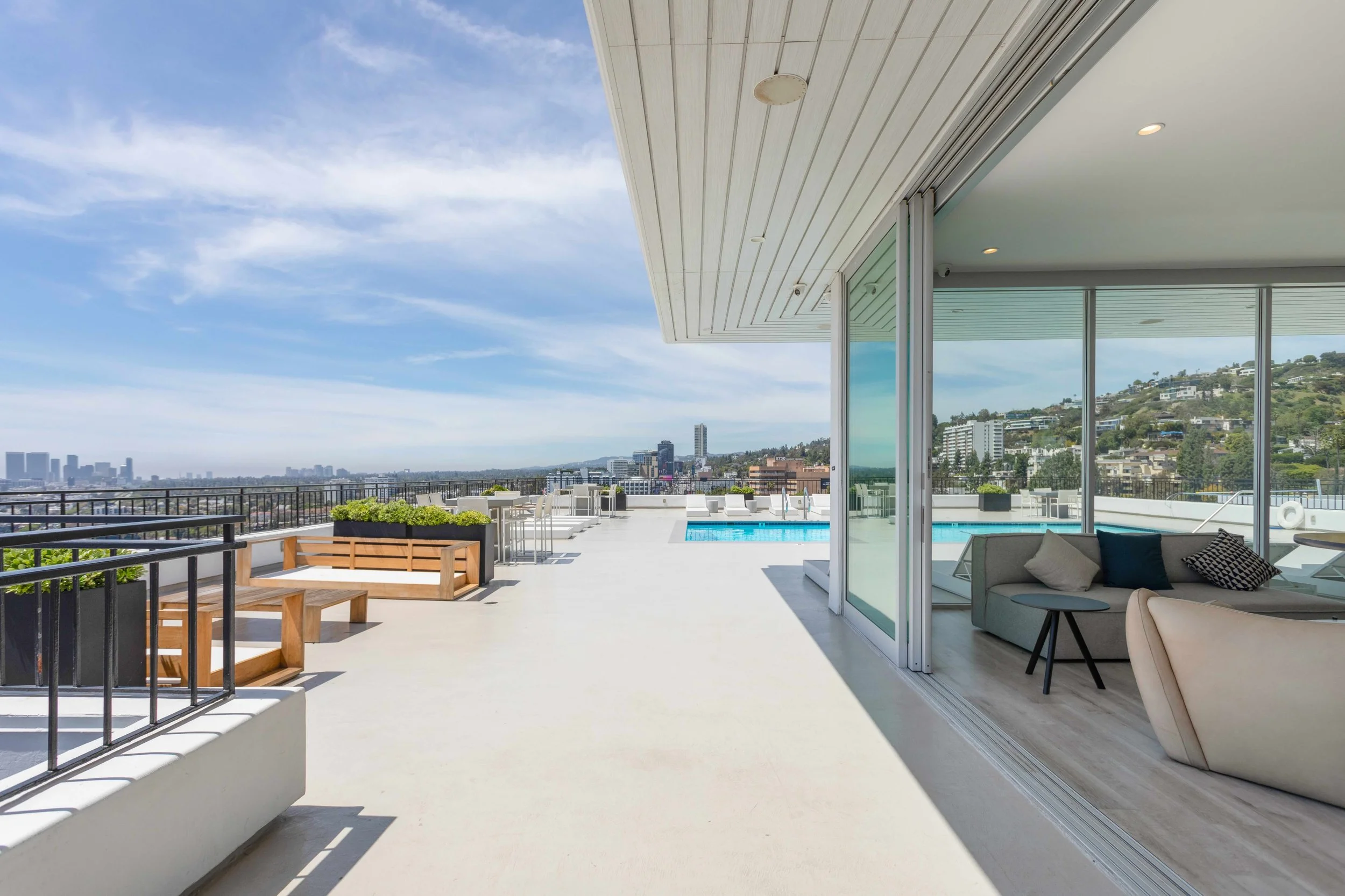 Beautifully updated condominium in the prestigious Empire West building, offering full-service amenities. This serene north-facing unit features a spacious terrace perfect for entertaining. Equipped with stainless steel appliances, Caesar stone countertops, hardwood floors, a discreet wet bar, and additional upgrades. Residents enjoy 24-hour valet parking for both residents and guests, concierge service, a tennis court, gym, dog park, and a newly remodeled rooftop with a pool, banquet room, firepit and more. Conveniently situated just one block away from the vibrant dining, shopping, and entertainment options of Sunset Plaza and Santa Monica Blvd.